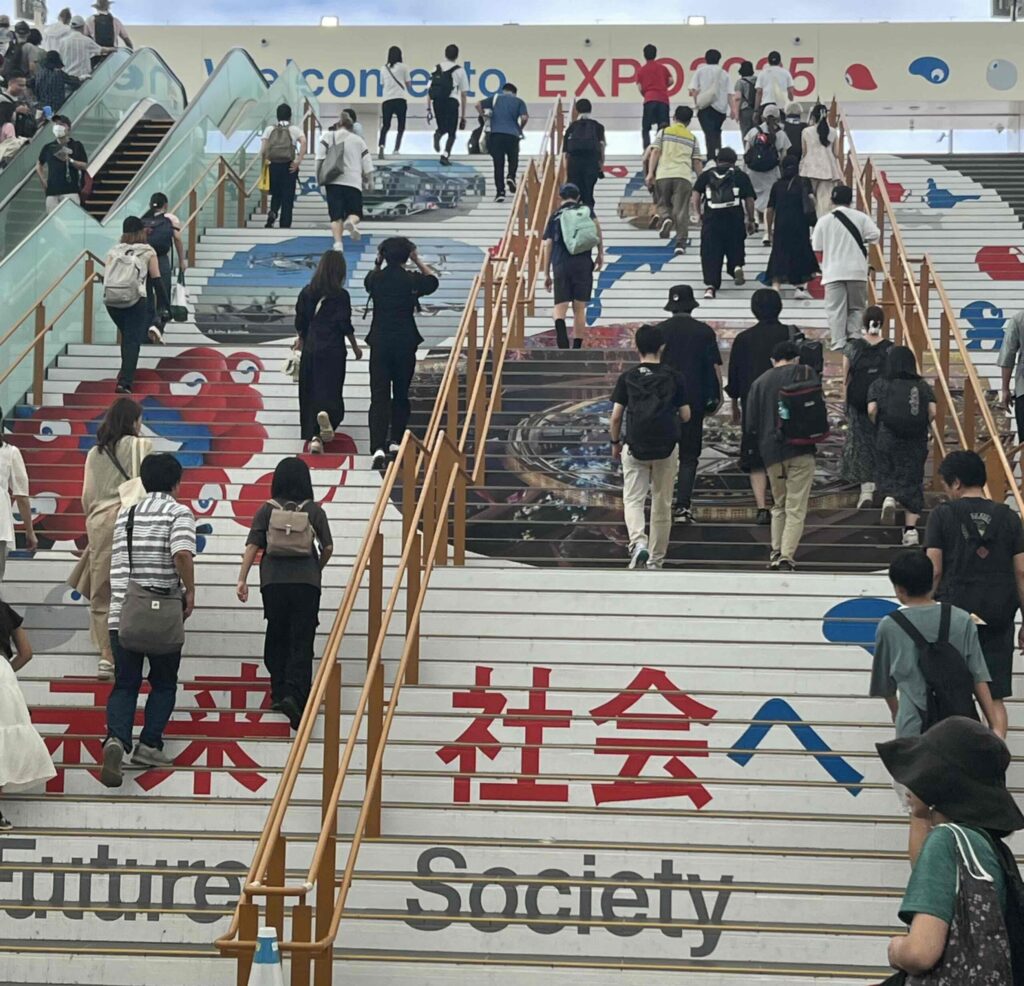 開場して間もないため人がいないかと思っていましたが、↓の写真の様に人はいっぱい。ここだけでも万博の盛況さが伺えます。