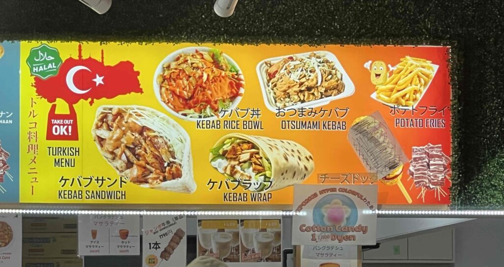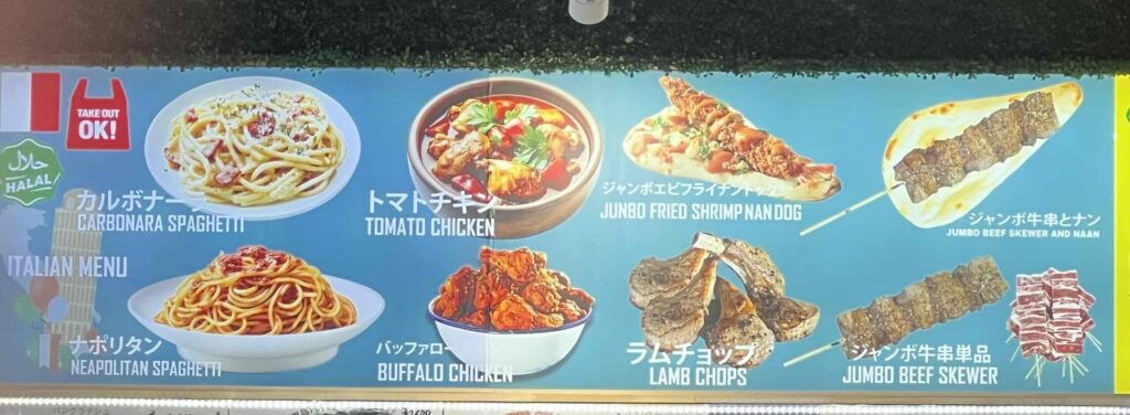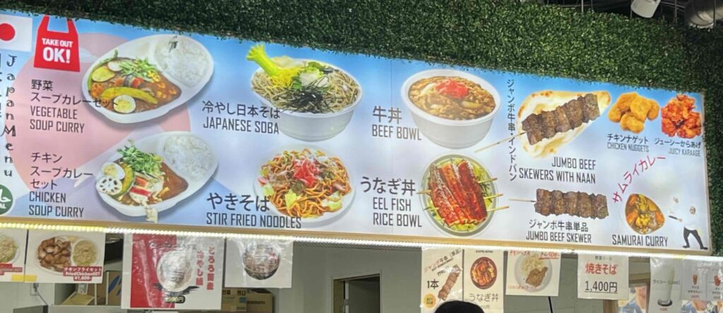 トルコ・イタリア・インド・バングラデシュ・日本の食事を楽しめるフードコートになります。