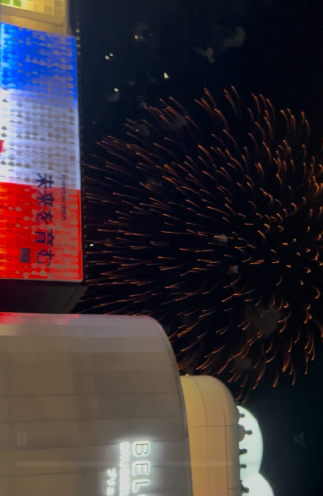 19時ごろに花火が上がりました。西ゲート付近だと打ち上げ場所からかなり近く、おかげで巨大な花火を見れることができました。